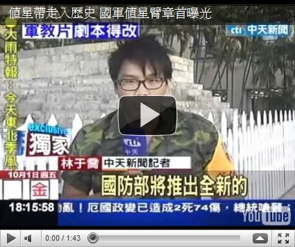 國防部預計於2010年11月份全面使用新式臂章取代現有的值星帶了,請看以下的報導: